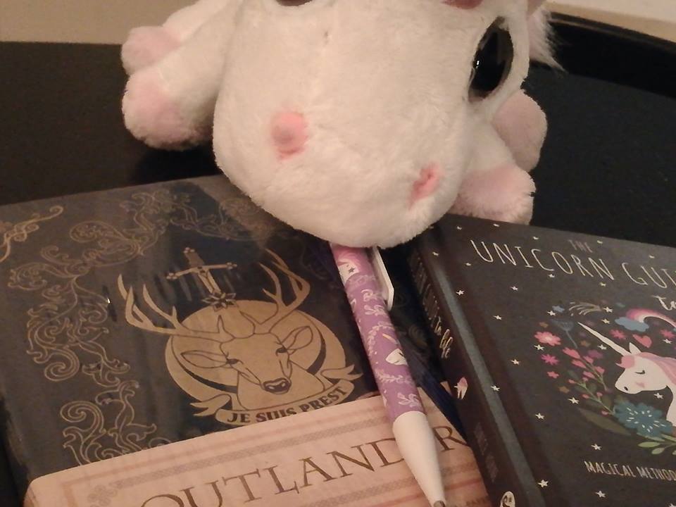 Y en este viaje lo encontré, justo arriba de un boli con unicornios dibujados, como no…la libreta de anotaciones de Outlander, con la frase de los Fraser “Je suis prest”. Escrito en francés medieval. Es que los Fraser son muy escoceses pero venían de Francia (sincronicidades, cómo me gustan). “Je suis prest” significa “Estoy preparada.”